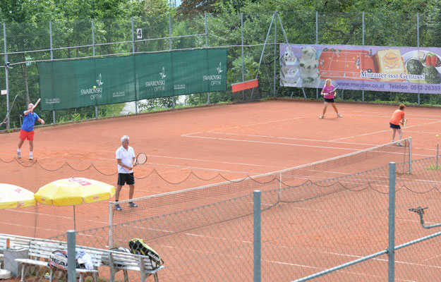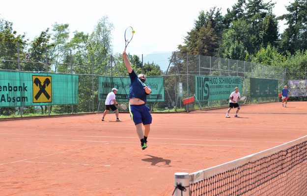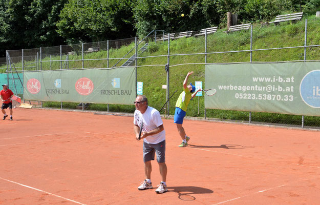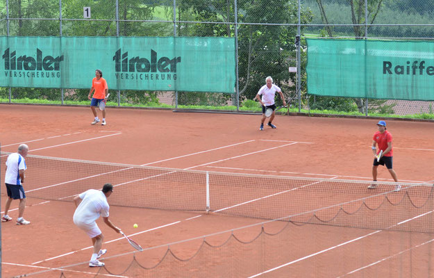 Mit einem Tennisturnier, an dem 24 männliche und acht weibliche Spieler teilnahmen, starteten die Feierlichkeiten für die beiden Geburtstagskinder Reini Hutter und Peter Schrott.