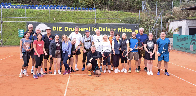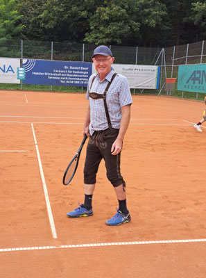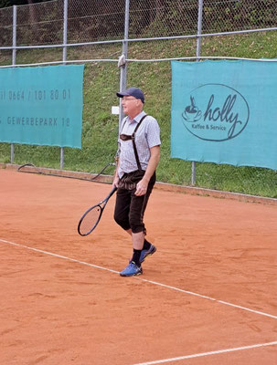 Gespielt wurden Doppelpartien mit einem besonderen Modus: In jeder Runde wurden neue Partner und Gegner ausgelost, sodass sich ständig neue spannende Konstellationen ergaben. Der Spaß am Spiel und das Miteinander standen klar im Vordergrund – und das spiegelte sich auch in der Kleidung wider. Einige Teilnehmer erschienen stilecht in Lederhose oder anderen Oktoberfest-Outfits und sorgten damit für zusätzliche gute Laune auf dem Platz.